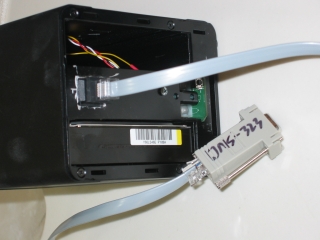 A very simple way of extending the serial port to an accessible position is to make a connector from the on-board header to a mini stereo (TRS) socket, then mount the socket behind the face plate of the DNS-323. This helps to preserve the original appearance of the unit, as the socket is only visible when the front face plate is removed as if to add a new drive.